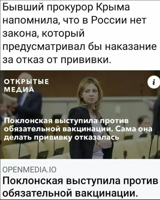 Когда у меня на работе моя начальница пыталась заставить меня пройти уколизацию, она с дуру обмолвилась: "Под мою ответственность". То есть, она была настолько уверена в этих вакцинах, что готова была себя подставить, лишь бы я укололся, и чтобы с нее высшее руководство не спросило за недостаточный процент.
