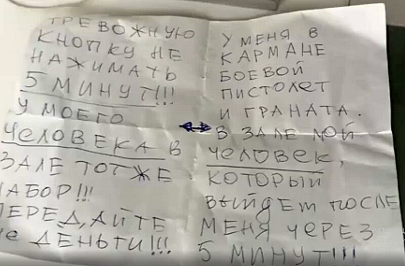 Попытка ограбление банка "по-симферопольски" с помощью листа формата А4