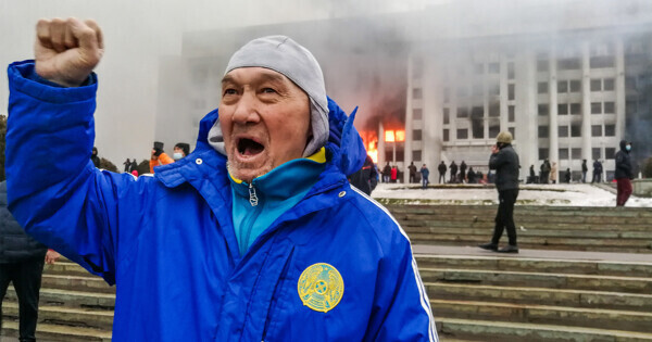 «Назарбаев уехал, мы добились того, что хотели», - говорит на видео манифестант и вскидывает вверх руку с дубинкой.