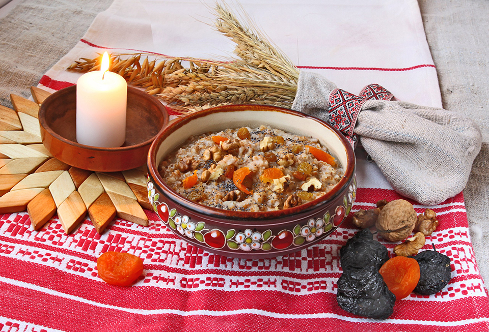 Главным блюдом является кутья, которую варят из цельных зерен риса или пшеницы. В нее добавляют мед, орехи, изюм, курагу, мак.