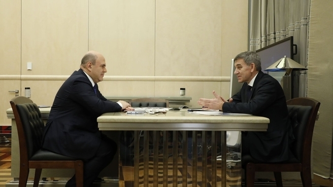 Встреча Михаила Мишустина с генеральным директором Российского научного фонда Александром Хлуновым
