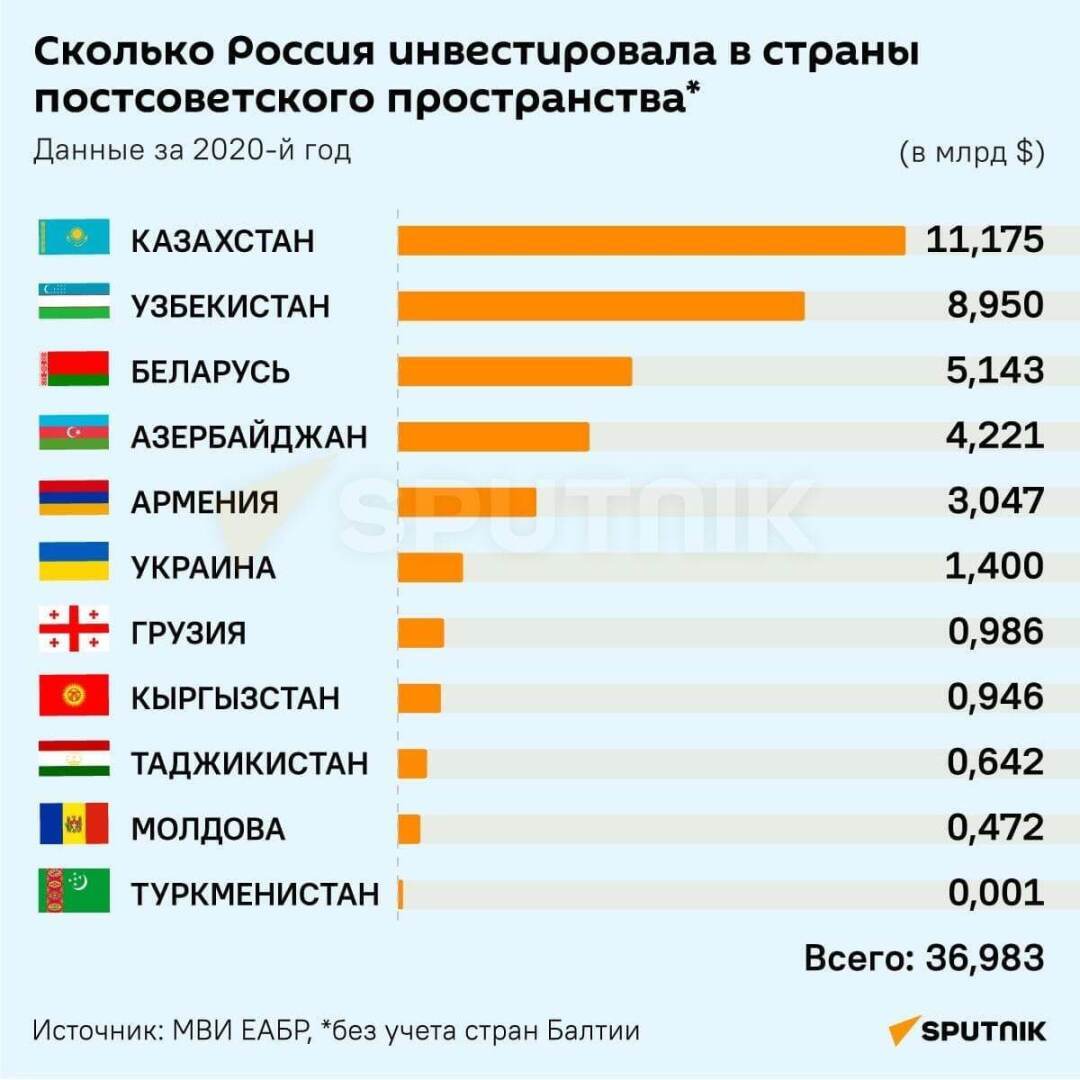 ▪️ С 2016 по 2020 годы объём накопленных российских инвестиций в Казахстан составил $11,175 млрд (примерно 30% от всех российских прямых инвестиций в страны СНГ).