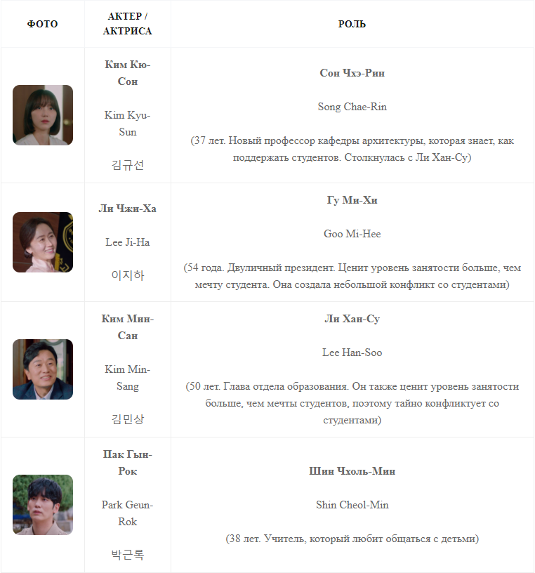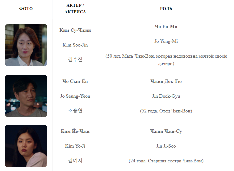 Кан Со-Ён пытается поступить в один из пяти лучших университетов Южной Кореи. А для этого будет самостоятельно готовится к вступительным экзаменам. Эту роль исполняет актриса Хван Бо-Рым-Бёль.