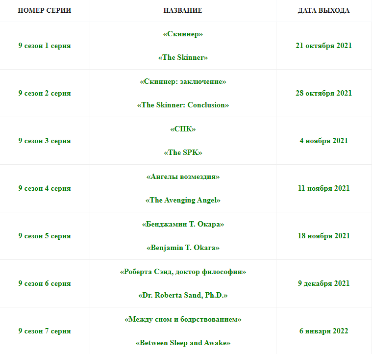 Дата выхода 8 серии 9 сезона 13 января 2022 года