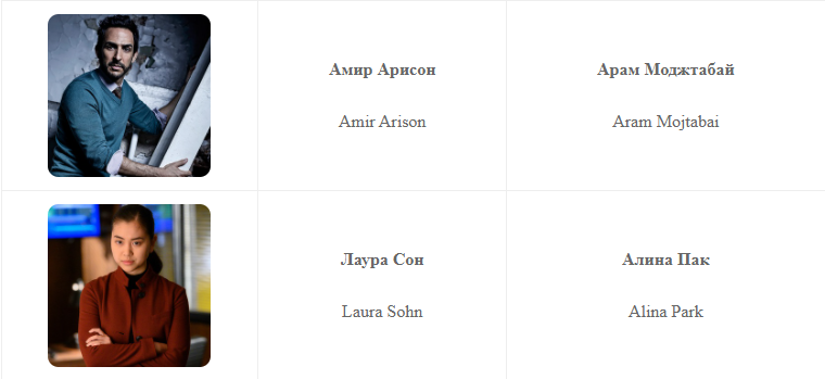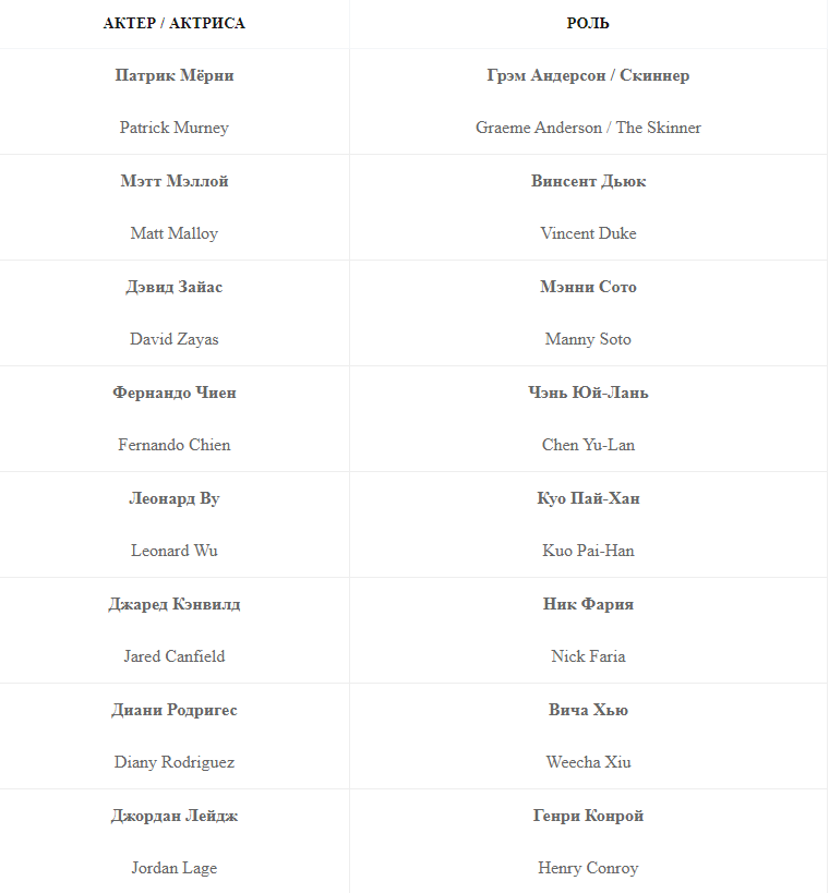 Джеймс Спэйдер, Диего Клаттенхофф, Гарри Ленникс, Хишам Тафик, Амир Арисон, Лаура Сон и др.