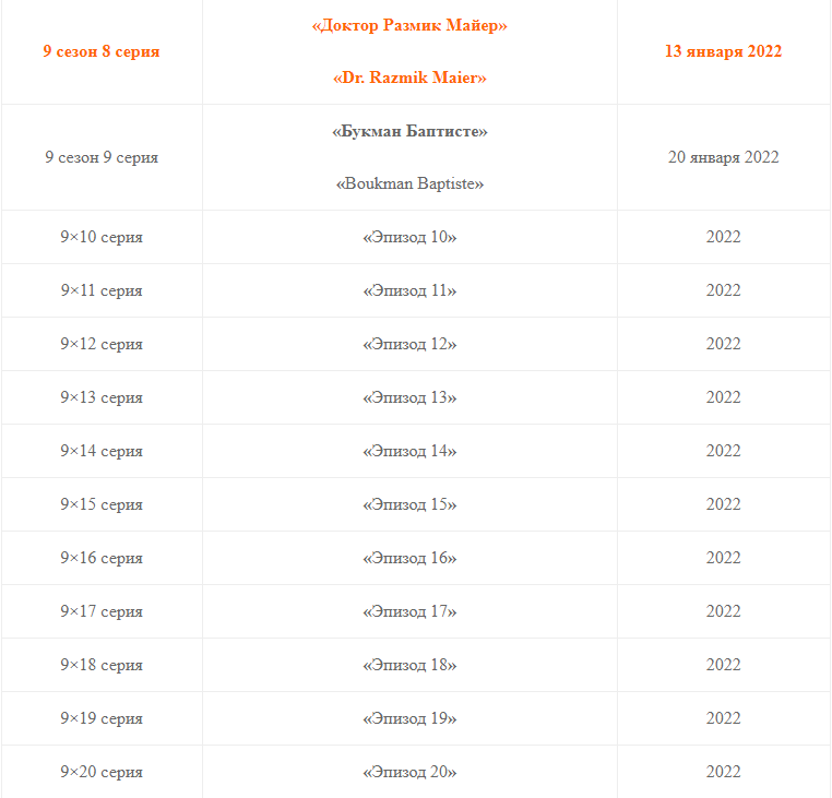 Американским телеканалом «NBC» назначена дата выхода 8 серии 9 сезона сериала «Чёрный список» (оригинальное название – «The Blacklist») на четверг, 13 января 2022 года. Эпизод выйдет под названием «Доктор Размик Майер».
