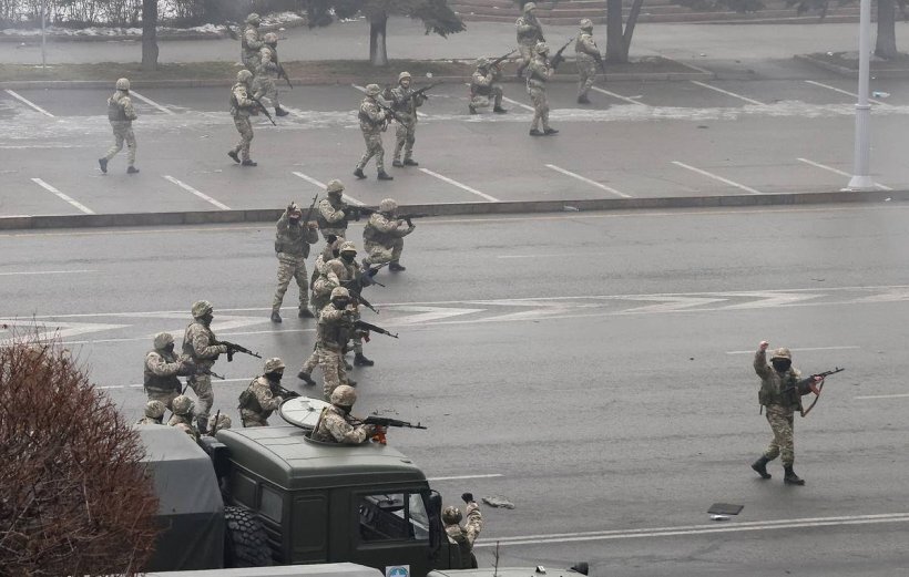 В Алма-Ате началась интенсивная перестрелка между военными и вооруженными людьми