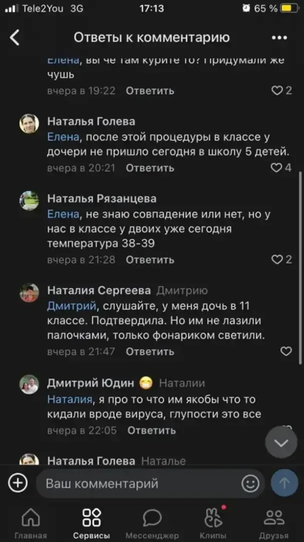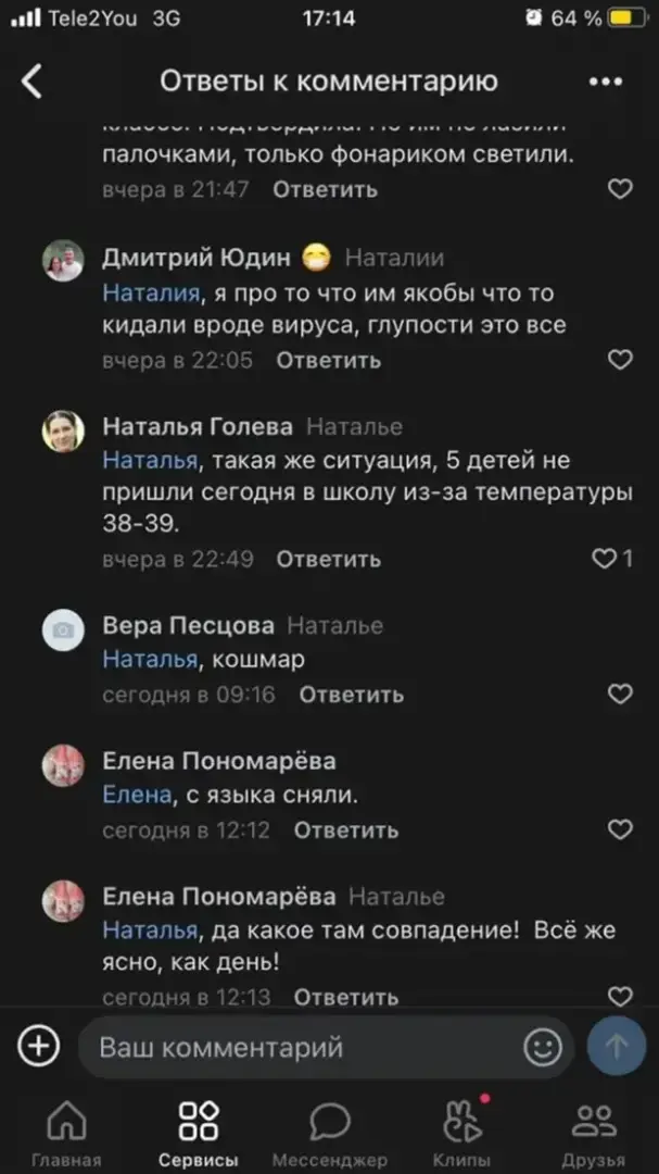 А вот дальше страшно: местные поликлиники не в курсе происходящего. Никаких документов на проведение плановых осмотров никто не выдавал. Вся администрация города Воронежа на данный момент находится в состоянии какого-то страха и не желает объяснять ситуацию. Непонятно кто проводил забор биоматериалов несовершеннолетних детей и зачем, куда пошли эти результаты, и кто ими воспользуется. Это беда не одного города Воронежа и трёх школ. Это может коснуться любой школы. А это фото из чата общения родителей