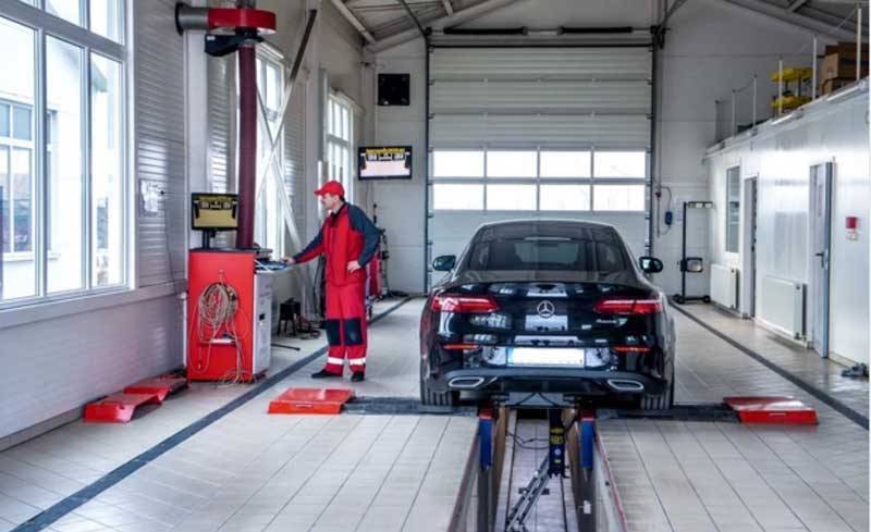 - проверит тормозную систему автомобиля на специальном роликовом стенде;