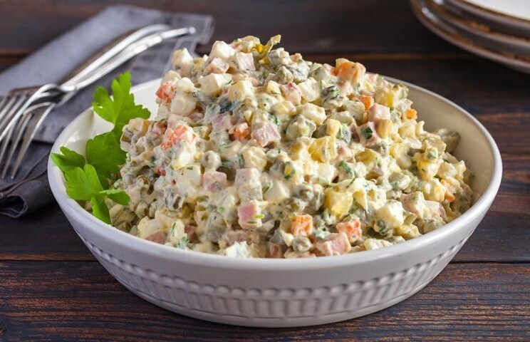 В праздник можно готовить любые салаты, которые любят в семье – со свининой, говяжьим языком, курицей, овощные.