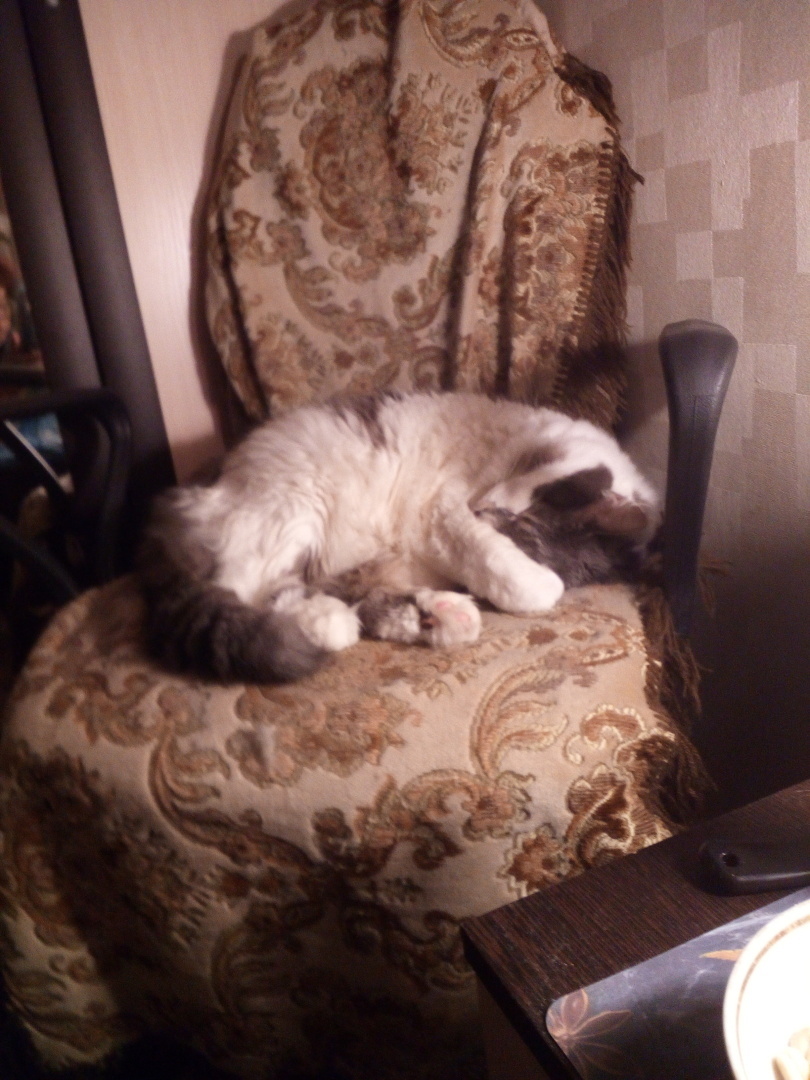 Не умеем жить без котов. Сейчас уже третья кошечка, до неё было два котика. Все подкидыши, но такие славные... Живут по 15 лет, уж так к ним привыкаешь, как к родному...