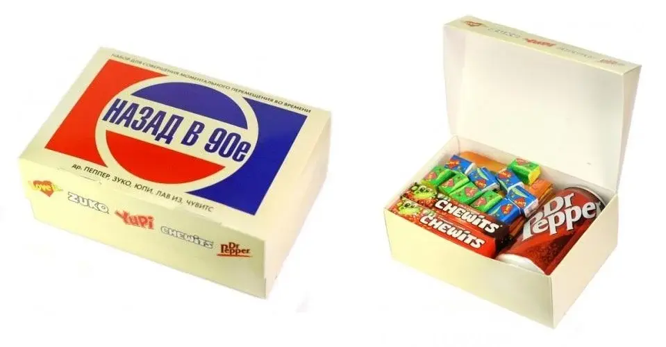 Некоторые изобретатели пошли ещё дальше и начали формировать тематические боксы с наполнением из сладостей 90-х, открыв который на несколько мгновений можно перенестись в прошлое и получить давно забытые эмоции.
