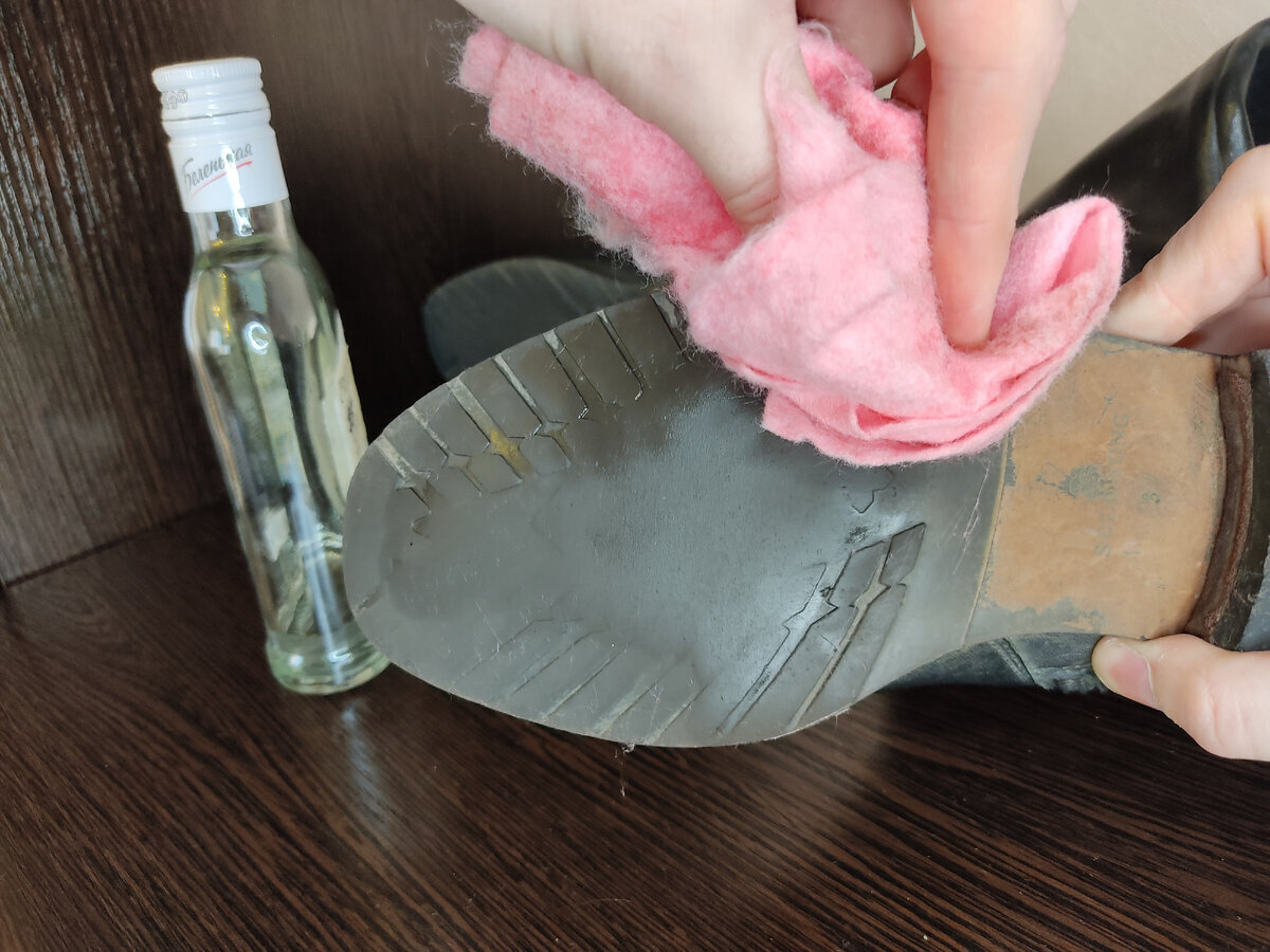 Помыл сапоги, дал им просохнуть, а затем обезжирил подошву спиртом.