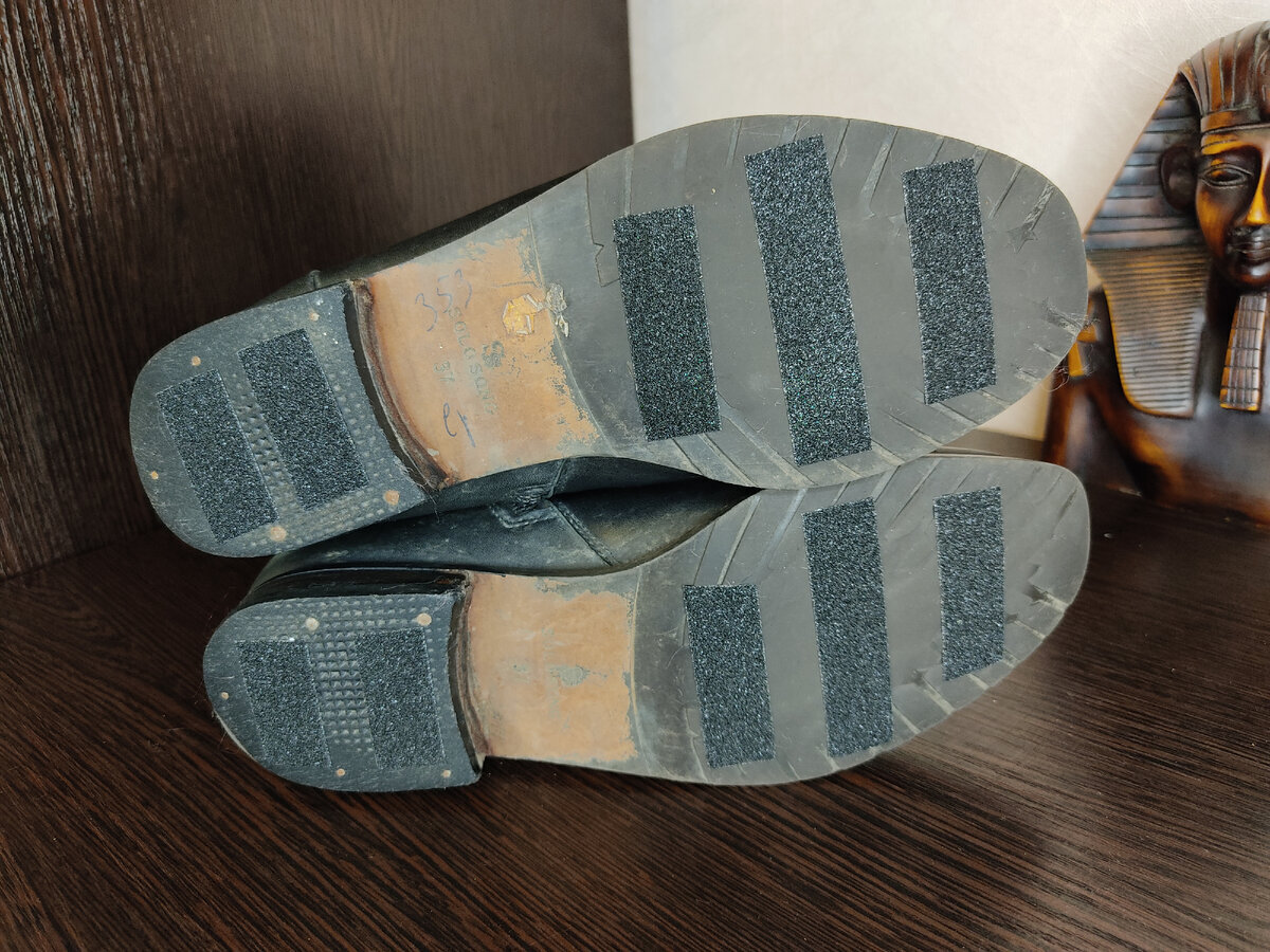 Отрезал несколько полосок ленты нужного размера и приклеил на подошву. В упаковке 1.5 метра, на два сапога мне понадобилось 28 см. Весь процесс занял не больше пяти минут. Даже писать об этом нечего, лучше смотрите.