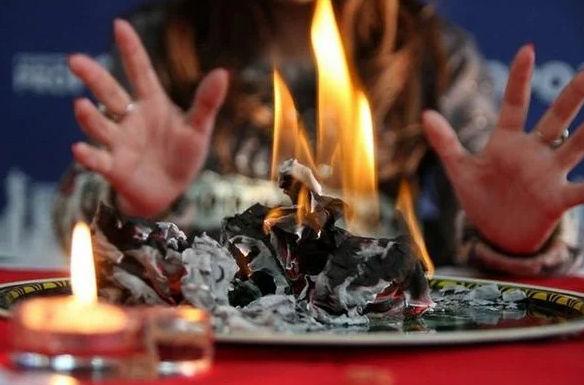 Закройтесь в ванной или на чердаке, света в помещении быть не должно. Зажгите свечу, лист скомкайте, положите на тарелку и подожгите. Когда бумага полностью прогорит, от неё останется пепел. Посветите на него пламенем от свечки и посмотрите, какую тень пепел отбрасывает на стену. Это будет знак, чего ждать в будущем. Увиденные символы означают следующее: