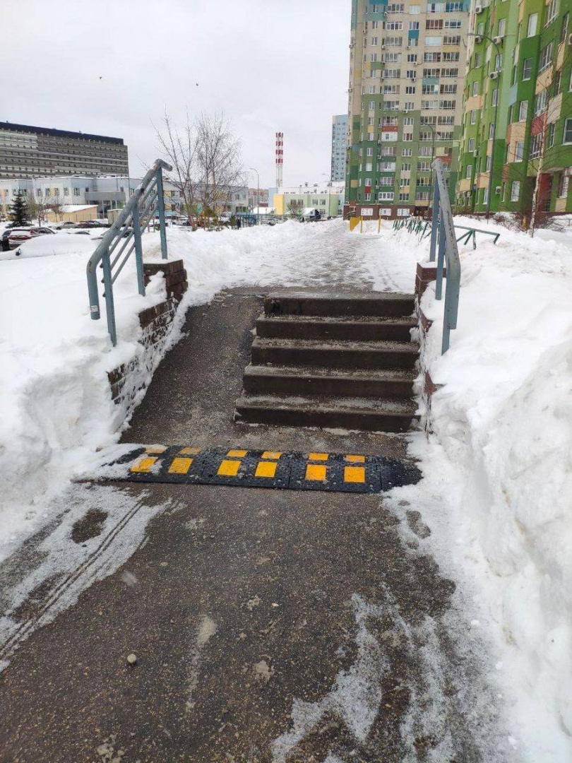 В Нижнем Новгороде установили лежачего полицейского перед обычной лестницей.