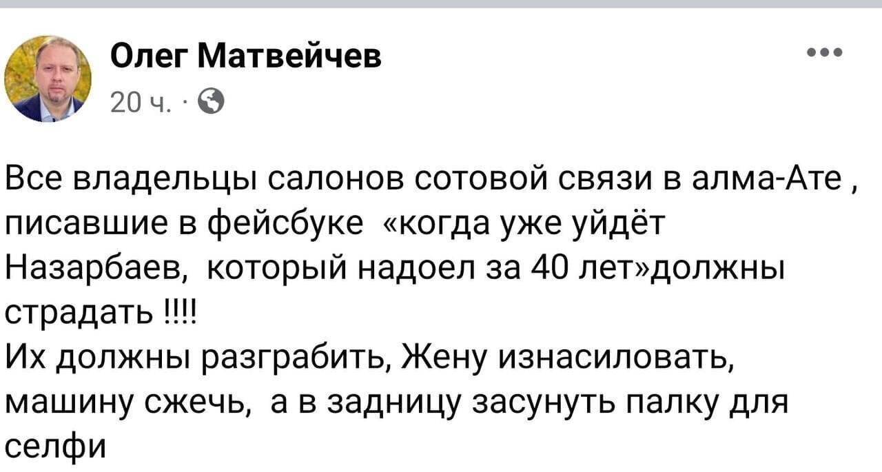-"Мало уроков? Сейчас бизнесмены алматы поддерживали протест и их магазины оказались разгромлены. Несправедливо?".