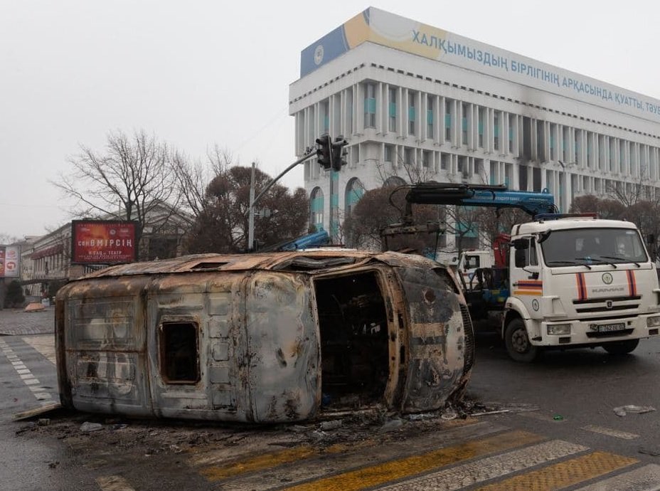 Есть жертвы с обеих сторон. Очевидцы публикуют кадры разрушенного Алма-Аты, сегодня ночью там, а также в некоторых других городах была слышна стрельба.
