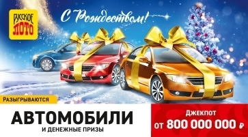 Джекпот тиража "Русское лото" № 1422 от 9 января 2022 года составляет 800 000 000 рублей, Автомобили. Остается 3 бочонка. Также в тираже разыгрывается большое количество других денежных призов. Выигрывает каждый 3-й билет.