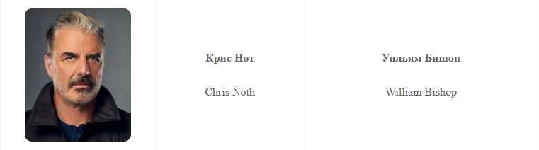 Крис Нот в роли Уильяма Бишопа – бывшего директора ЦРУ, владельца частной охранной компании и старого друга Робин. Благодаря связям, оставшимся в высших чинах, помогает подруге бороться с преступностью.