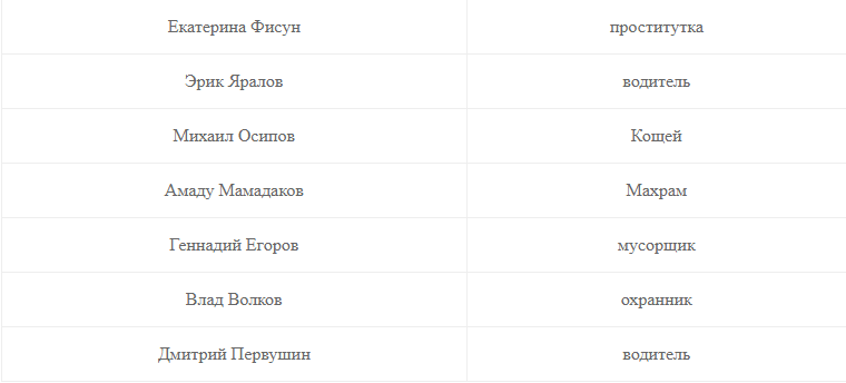 Также в сериале засветились актеры Дмитрий Куличков («Майор»), Николай Шрайбер («Хрустальный»), Ольга Веникова («Колл-центр»), Михаил Осипов («Желтый глаз тигра»), Ирина Вилкова («Восьмидесятые»), Амаду Мамадаков («Зона комфорта»), Сергей Степин («ЧОП») и другие.