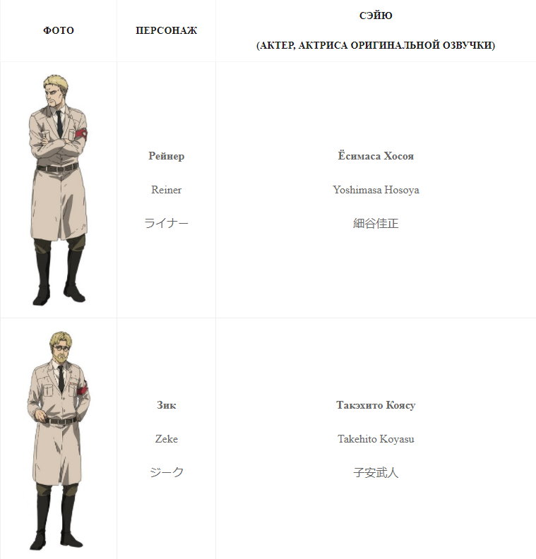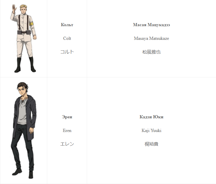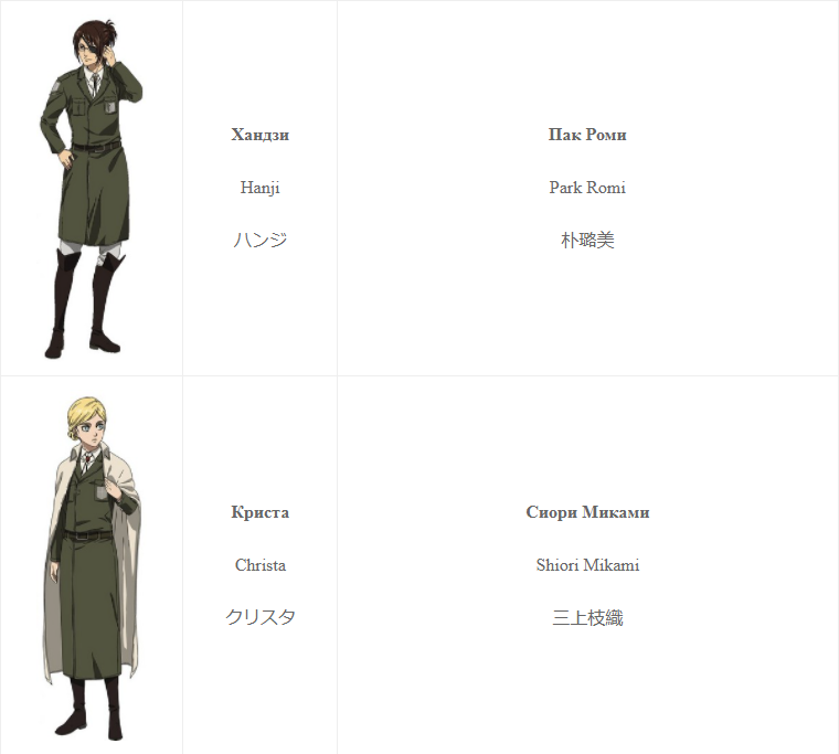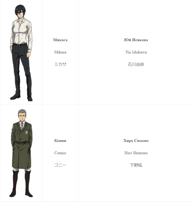 Персонажи и актёры озвучки аниме «Атака титанов»