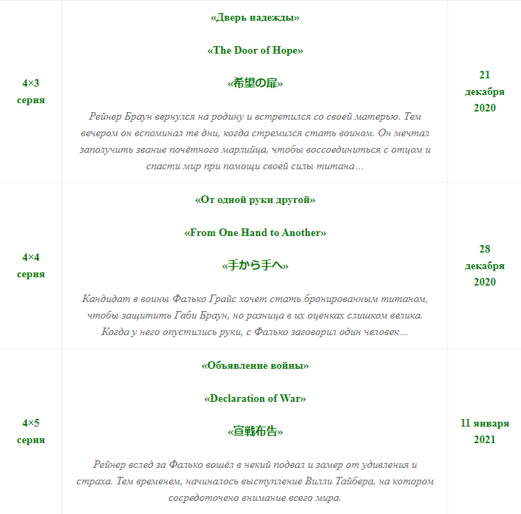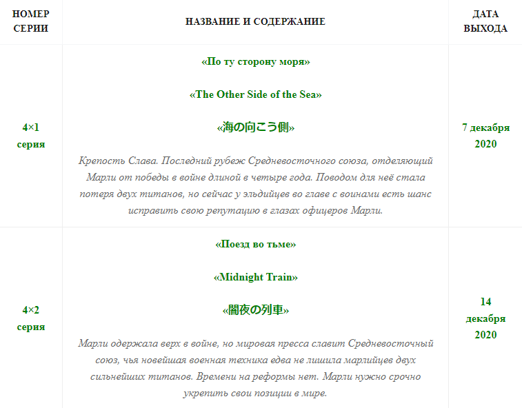 Аниме «Атака титанов | Attack on Titan» 4 сезон: Часть 1, 2 (2020-2022) – дата выхода серий на канале «NHK General TV», онлайн-кинотеатрах «Crunchyrol