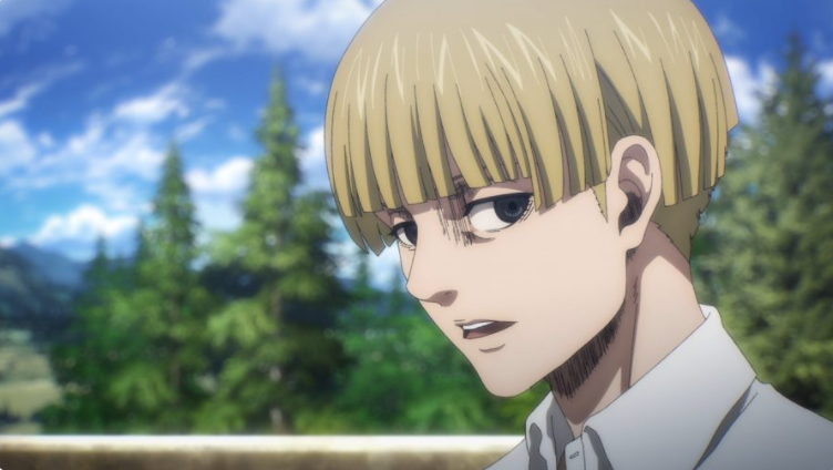 Габи и Фалько оказались на дирижабле, который движется в сторону острова. Одна известная разведчица Легиона убита. После чего был ликвидирован охранник, что открыло «почетным марлийцам» путь к побегу. Они ведут себя так же, как юные бойцы Парадиза. У этих детей собственные моральные ориентиры.