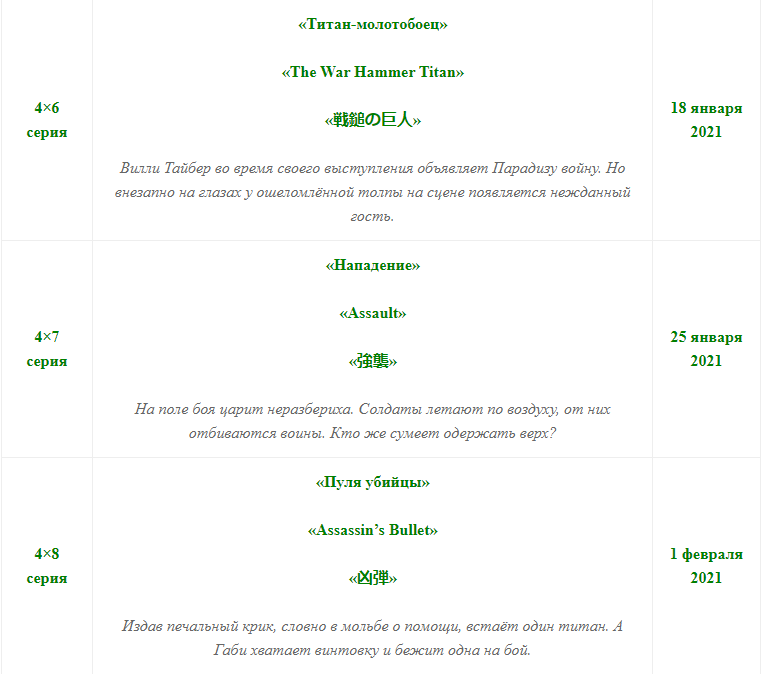 Атака титанов 4 сезон: Часть 2 – график выхода серий