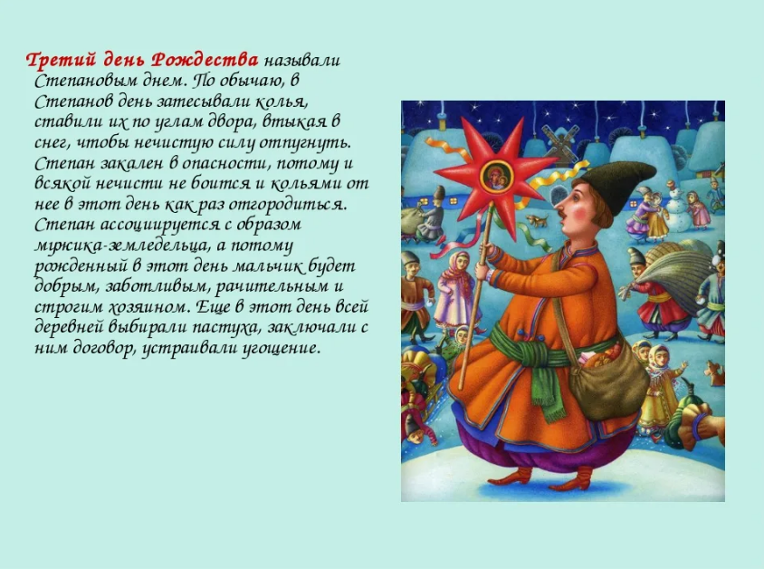 В старину День святого Стефана называли Степановым. Продолжавшиеся Святки, то есть период между Рождеством и Крещением Господнем, в этот день отмечали пряниками и колядками. Последние представляли собой небольшие пирожки из пресного пшеничного теста с разными начинками.