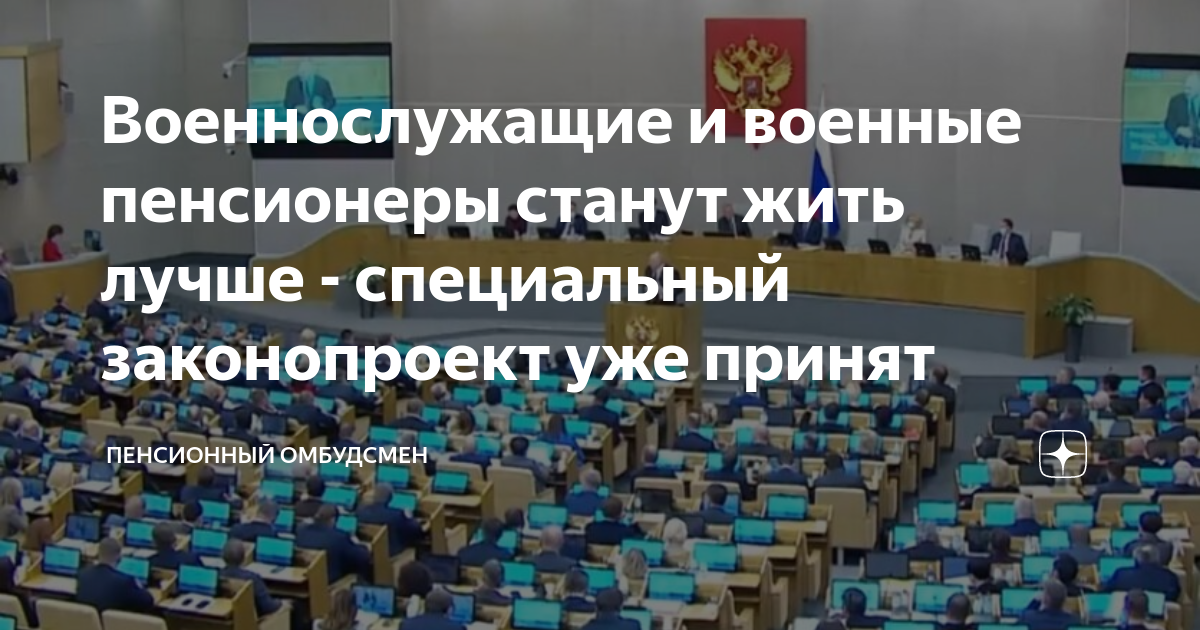 Источник: https://zen.yandex.ru/media/id/5fb42072f77ba7326d0a7fae/voennoslujascie-i-voennye-pensionery-stanut-jit-luchshe-specialnyi-zakonoproekt-uje-priniat-61bcd221af5d1846c091831a