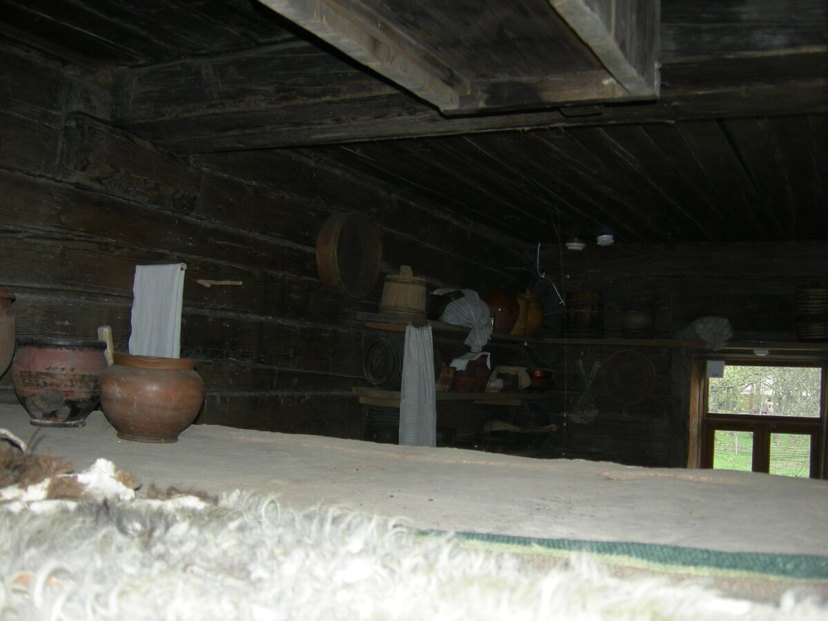 Внутри горел единственный небольшой костер с дырой в потолке для выхода дыма. Крохотное окошко было единственным источником света, и проникающий свет падал на семью из пяти человек. Мужчина жил в хижине с двумя сыновьями и двумя дочерьми, дочери явно напуганы посетителями. Одна из дочерей спряталась за бревном и громко молилась: