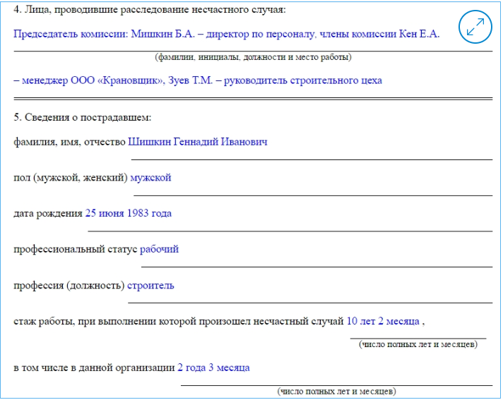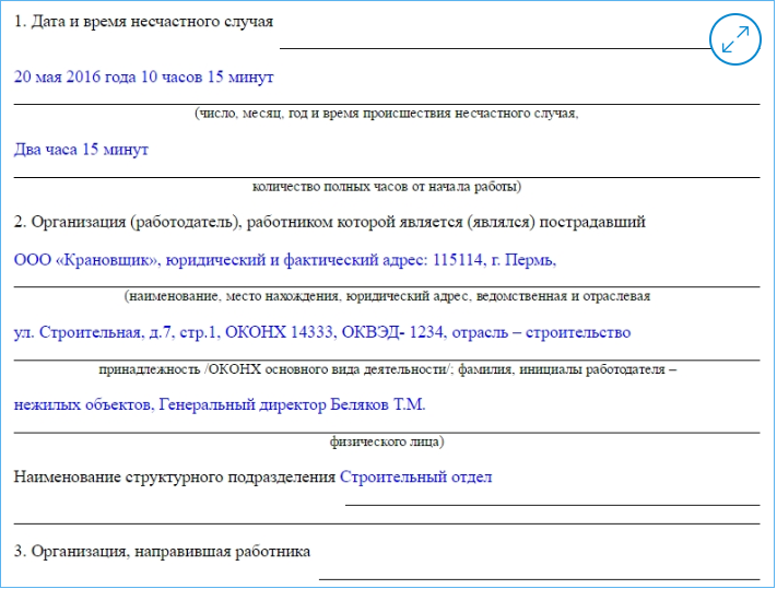 Инструкция по заполнению акта о несчастном случае на производстве
