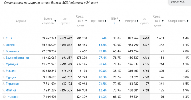 По данным за последние сутки, в мире лидер по заболевшим на душу населения — Франция, число умерших из-за коронавируса там также падает.