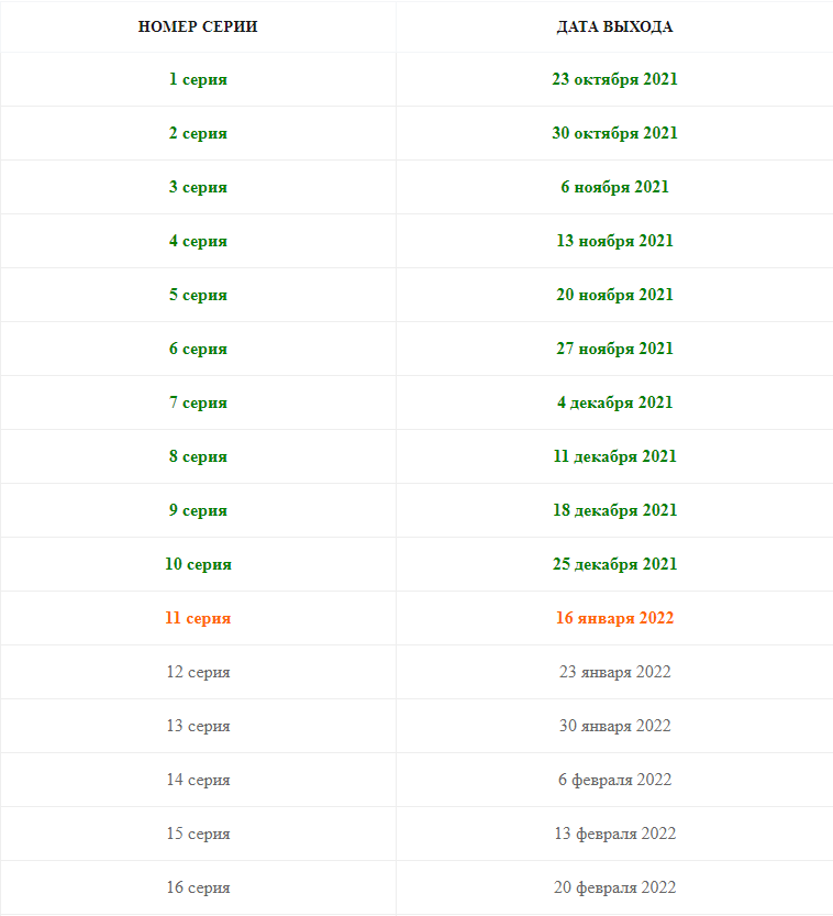 Дата выхода 11 серии 16 января 2022 года