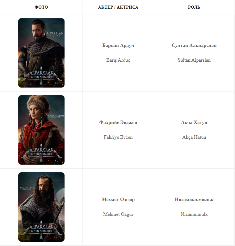 Актеры и роли сериала «АльпАрслан: Великие Сельджуки | Alparslan: Büyük Selçuklu» (2021)
