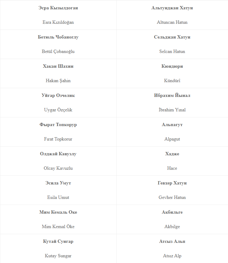 Возлюбленную АльАрслана во втором сезоне «Великих Сельджуков» сыграла популярная актриса Фахрийе Эвджен. Она завоевала любовь зрителей после съемок в «Корольке – птичке певчей», «Курте Сеите и Александре». В течение последних четырех лет актриса нигде не снималась по семейным обстоятельствам. Но от роли в новом масштабном историческом телевизионном проекте она не могла отказаться.