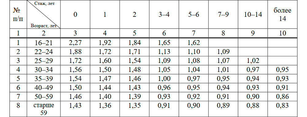 Коэффициент страховых тарифов в зависимости от характеристик (навыков) допущенных к управлению транспортным средством водителей