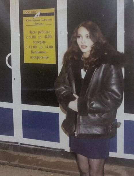 4. Девушка на фоне магазина. Тогда в моде были такие вот короткие дублёнки. Думаю не ошибусь если они вновь станут модными