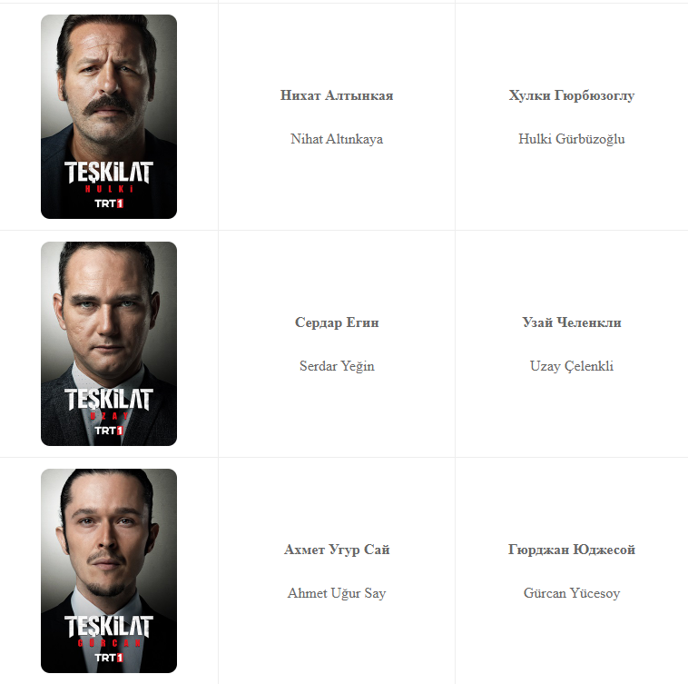 Сценарий военной драмы «Teşkilat» написан кинодраматургом Эхтемом Озышыком, который является автором сюжетов «Марашанца», «Пойраза Караеля» и «Обещания».