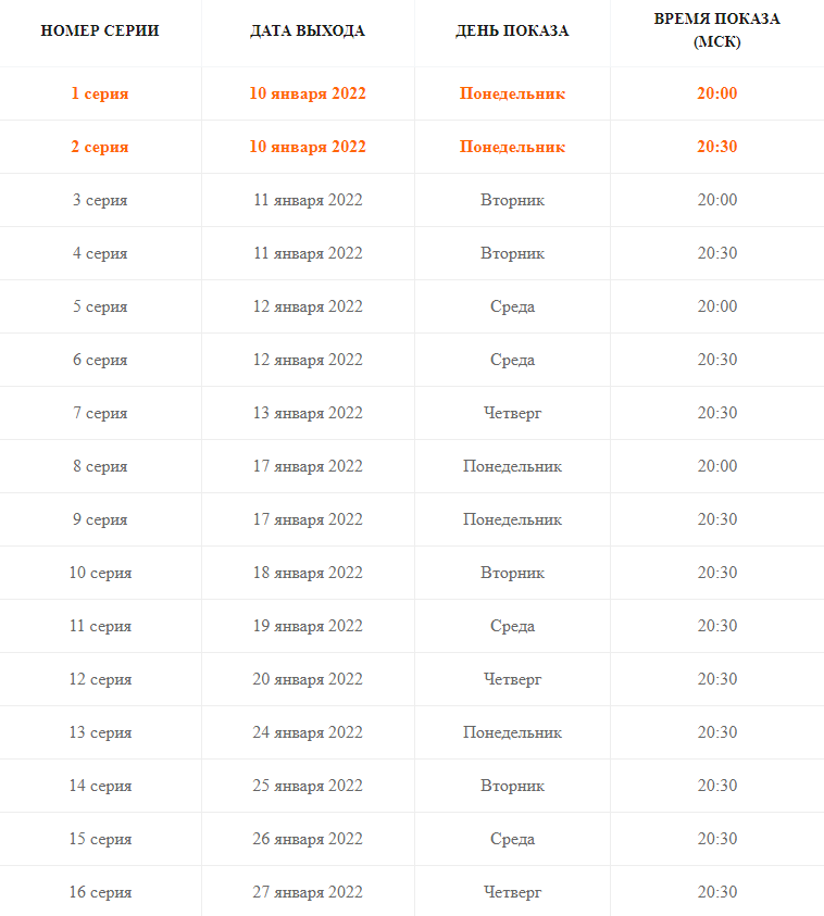Дата выхода 1-2 серии 10 января 2022 года