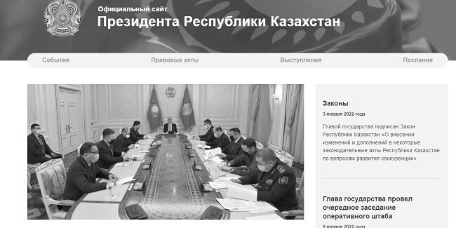 Указ о об этом Касым-Жомарт ТОКАЕВ подписал еще 8 января. В связи с трауром сайт президента полностью окрашен в черно-белые цвета.