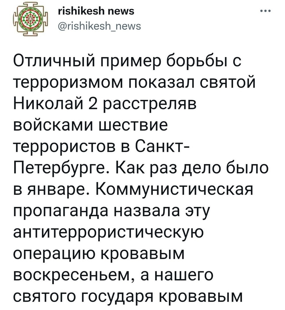 Николаша кровавый! А сколько в нашей России его почитателей, которые горько льют слёзы по невинно убиенному Николашке.