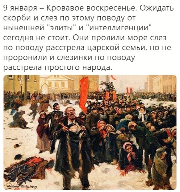 После событий 9 января к Николаю-2 привели группу специально отобранных рабочих (которые, впрочем, на месте кровавых событий не были). Царь держал монолог примерно такого содержания: "Я знаю, что вам трудно, но вашим хозяевам еще труднее (!), поэтому недовольства вашего не потерплю, а недовольства будем строго подавлять". Развернулся и ушел. Рабочих увели. Они так и не поняли, для чего их приводили к царю.