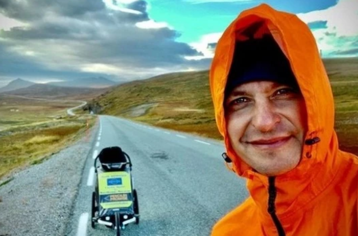 Как рассказал путешественник в своём инстаграме, он бежит один с детской спортивной коляской. В ней вся его экипировка и снаряжение.