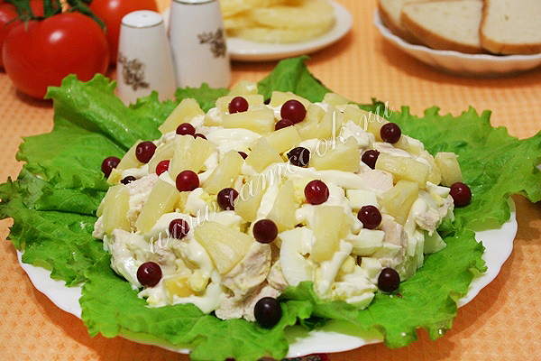 Салат с ананасами и куриной грудкой: праздничный рецепт к любому празднику. Пошаговый рецепт