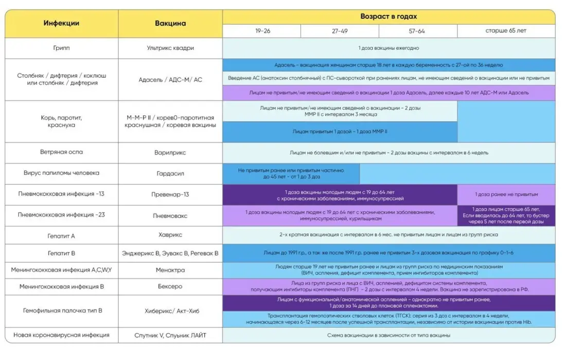 Вакцинация до зачатияНекоторые прививки необходимо сделать за несколько месяцев до зачатия — это вакцина от краснухи (за 3–6 месяцев) и от ветряной оспы (за за 1 месяц). Также возможно потребуется ревакцинироваться, если уровень антител к кори, краснухе и ветрянке низкий. Во время беременности краснуха почти всегда приводит к очень тяжёлым порокам и мертворождению. Ветрянка во время беременности тоже может угрожать плоду. В первом триместре возможны пороки развития, в третьем, когда все органы уже сформированы, высокий риск развития опасной для жизни инфекции (врождённая ветрянка). В медицинской практике мы часто видим случаи, когда дети заражаются ветрянкой в детском саду или школе и «приносят» её домой. Недавно в инфекционную больницу, где раньше работала наш педиатр, поступила женщина на 38 неделе беременности. Она заразилась ветряной оспой от своего первого ребёнка. На таком сроке нельзя проводить лечение противовирусным препаратом «Ацикловир», поэтому пациентку просто изолировали. Ей пришлось две недели лежать в палате с высокой температурой и сильным зудом по всему телу. Но в итоге ей очень повезло: и сама выздоровела, и ребёнок родился здоровым. Ветрянка опасна не только для беременных. Вероятность тяжелого течения у взрослых намного выше, чем у детей. Среди осложнений есть такие грозные состояния, как пневмония, менингит и энцефалит. Взрослые в 25 раз чаще умирают от ветряной оспы, чем дети. Однако это не значит, что лучше переболеть ветрянкой в детстве. Последние годы популярны «ветряночные вечеринки»: когда родители приводят своих здоровых детей в гости к заражённым, считая, что лучше получить естественный иммунитет. Но это из разряда мракобесия: нельзя предугадать, в какой форме ребёнок переболеет — в лёгкой или в тяжёлой. В большинстве случаев дети легко переносят ветряную оспу. Однако мы не можем прогнозировать вариант течения у конкретного ребенка. Иногда у детей случаются летальные исходы, и в 21 веке можно потерять ребёнка из-за банальной ветрянки. Ни одна вакцина не гарантирует 100% вероятности, что человек не заболеет. Но она гарантирует на 100% (если у пациента нет проблем с выработкой антител и иммунным ответом), что человек не заболеет в тяжёлой форме. И если вы надеетесь, что, переболев ветрянкой в детстве, получили надёжные антитела на всю жизнь, должна вас огорчить: так бывает не всегда. Вирус ветряной оспы остаётся в нервных клетках навсегда и много лет спустя может снова появляться в виде опоясывающего лишая, а это очень больно. Несмотря на тяжёлые последствия отказа от вакцинации, прививки от ветрянки пока нет в Национальном календаре обязательной вакцинации (только в календаре по эпидемиологическим показаниям): российских аналогов вакцины нет, а закупать зарубежную очень дорого. Пока её можно сделать за свой счёт. В среднем вместе с осмотром врача это стоит 4300 рублей. Вакцинация во время беременностиВ третьем триместре необходимо вакцинироваться от коклюша. Оказывается, многие не знают, что беременным можно и нужно делать эту прививку. Объясню, зачем. Коклюш может привести к смерти младенца. Первую дозу вакцины малыш получает только в 3 месяца, и она не даёт стопроцентной защиты, следующие две дозы вводят до 6 месяцев. Таким образом, сразу после рождения и до 3 месяцев ребёнок оказывается не защищён от к