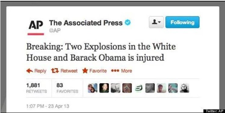 В апреле 2013 года в профиле Twitter информационного агентства The Associated