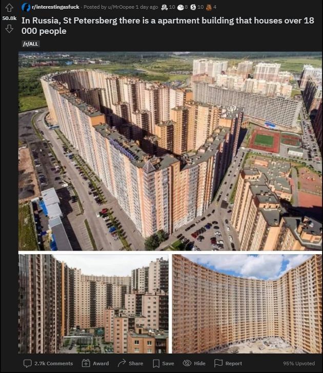 Конечно, подобные жилые комплексы есть не только в Петербурге и в России, но и в Китае и Великобритании, а также в других странах, но есть небольшое отличие, которое заключается в разных инфраструктурах в этих районах. Но вернёмся к комментариям: