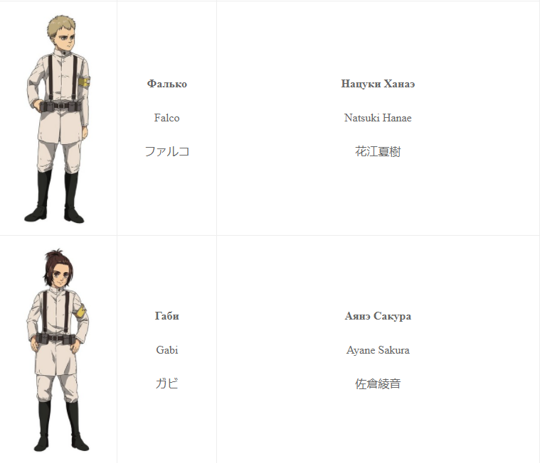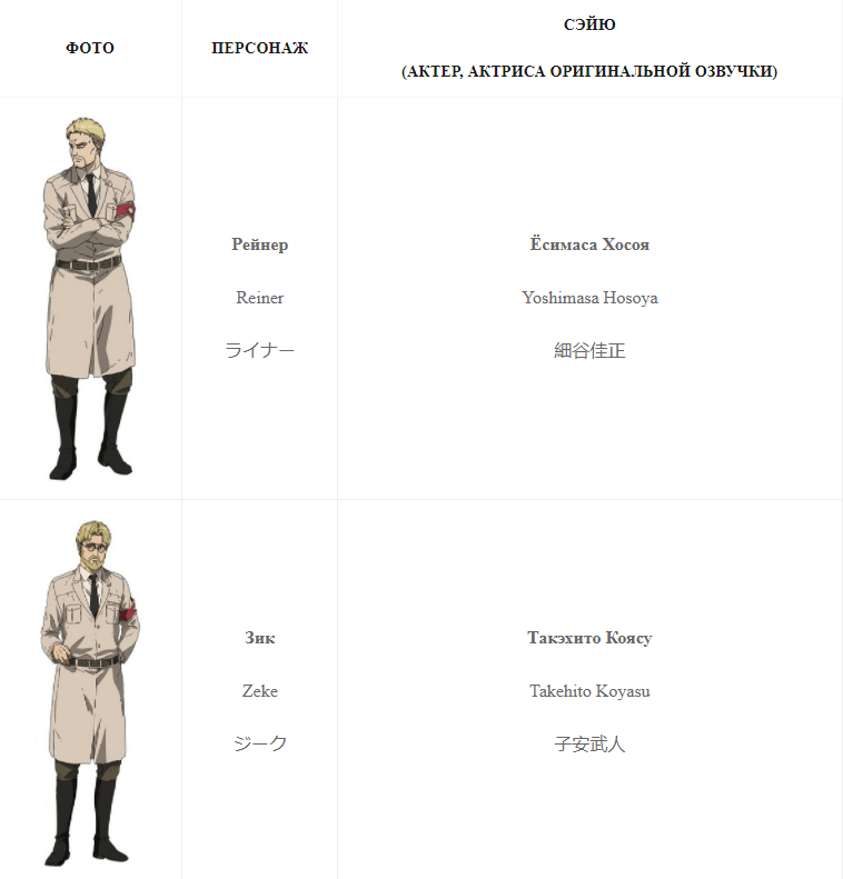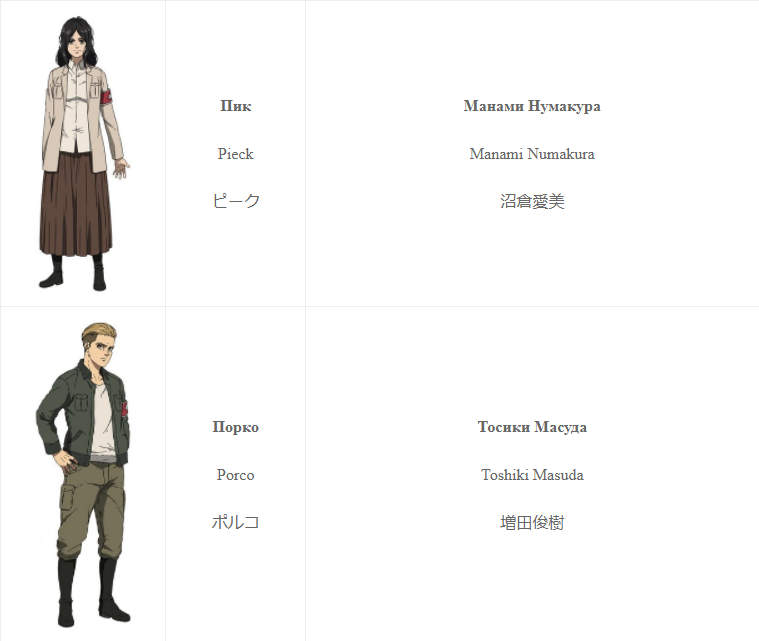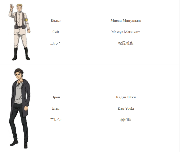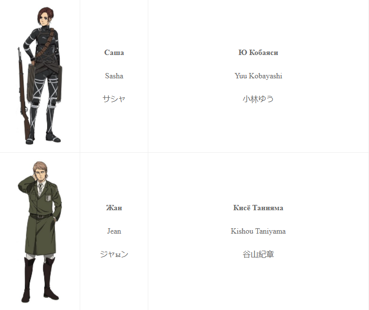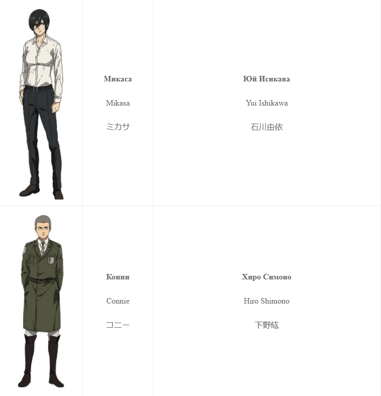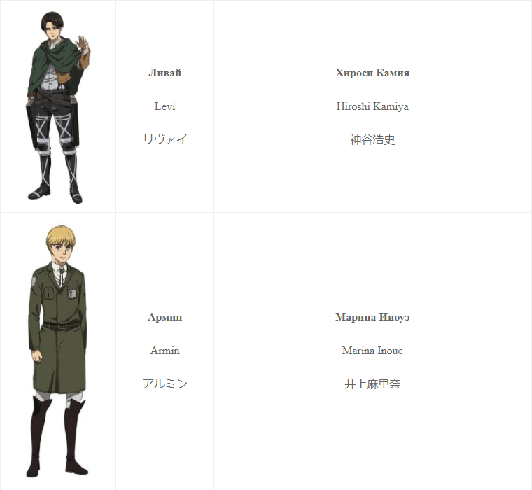Персонажи и актёры озвучки аниме «Атака титанов»